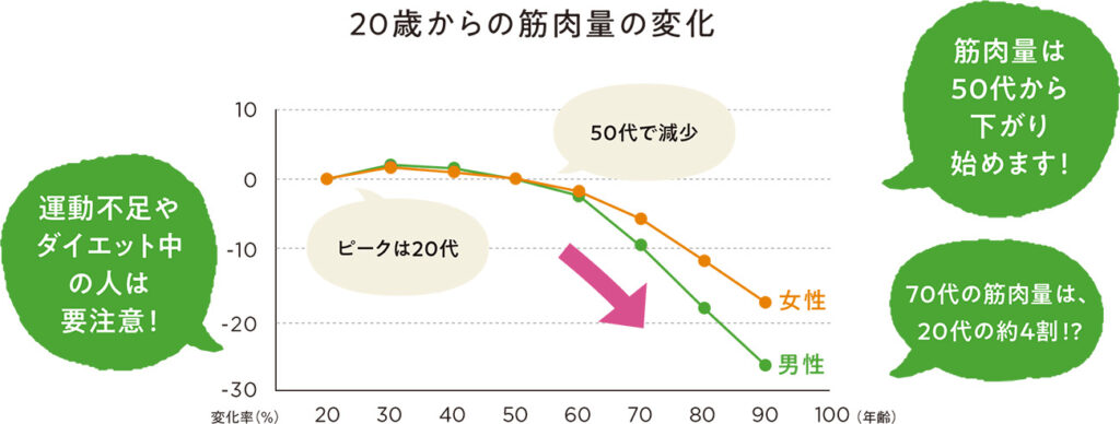 筋肉量は20代をピークに年々低下していきます。